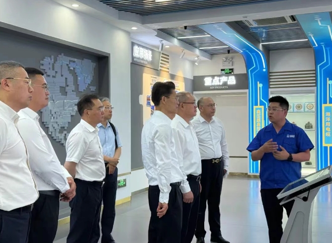 在企業(yè)展廳,趙東一行詳細(xì)了解漢纜股份在發(fā)展歷程、科技創(chuàng)新、產(chǎn)品研發(fā)等方面取得的成果,并對(duì)公司在線監(jiān)測(cè)系統(tǒng)與電纜材料板塊進(jìn)行了重點(diǎn)考察,就相關(guān)技術(shù)應(yīng)用與產(chǎn)業(yè)發(fā)展進(jìn)行了深入交流。